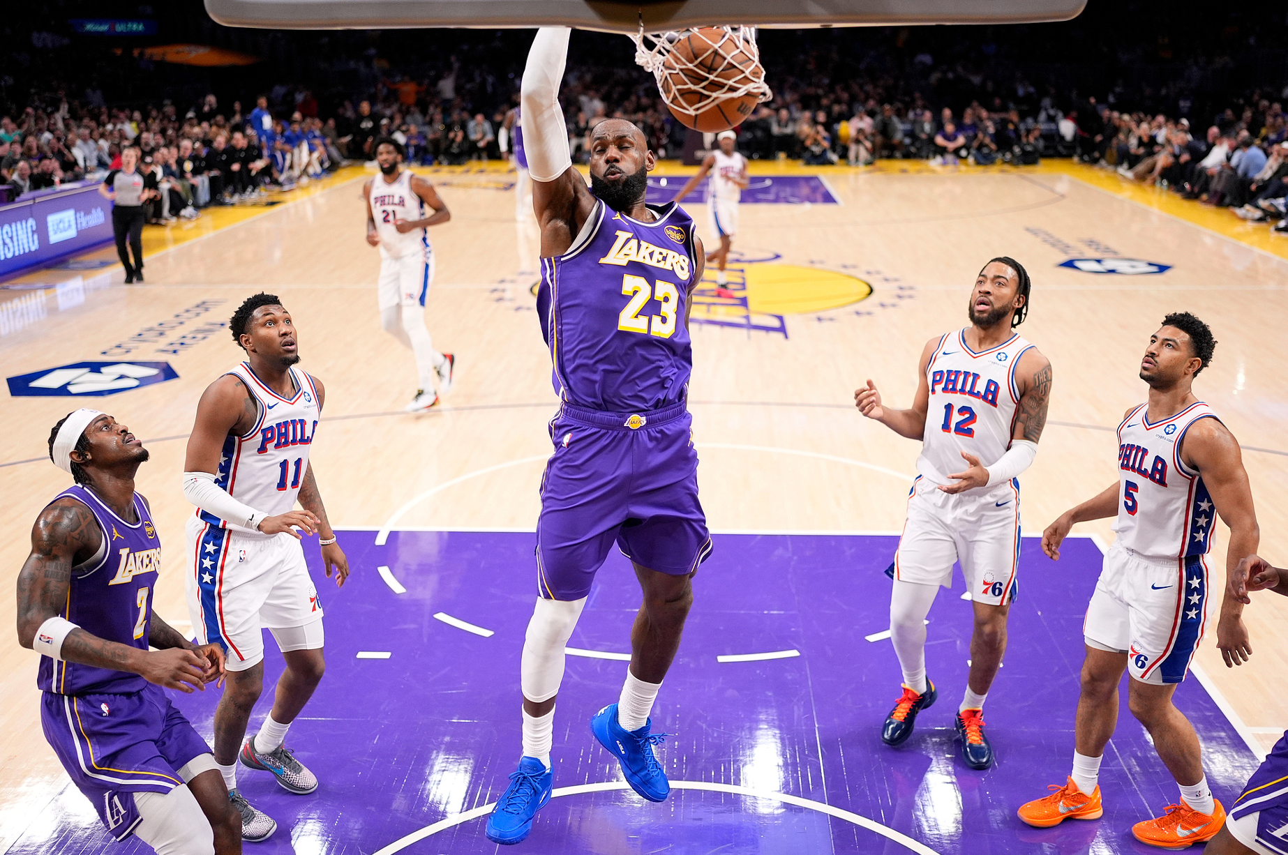 末节开场里夫斯连续两个三分球,但詹姆斯差点三不沾,詹姆斯面对恩比德的防守竟然被断了,一个比他高10厘米的中锋掏球他都护不住!詹姆斯助攻斯玛特一个,詹姆斯制造马克西第五次犯规,随后勒布朗还完成了一个君临天下的暴扣。